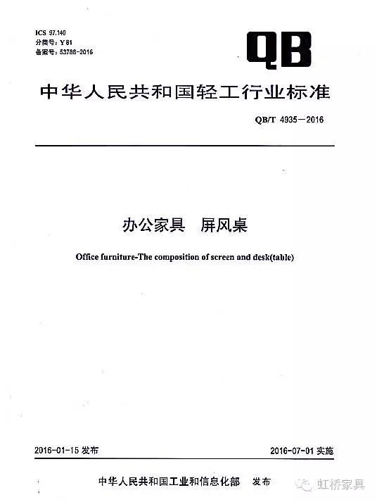 ▲中華人民共和國輕工行業(yè)標(biāo)準(zhǔn) 辦公家具 屏風(fēng)桌