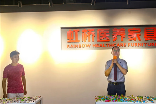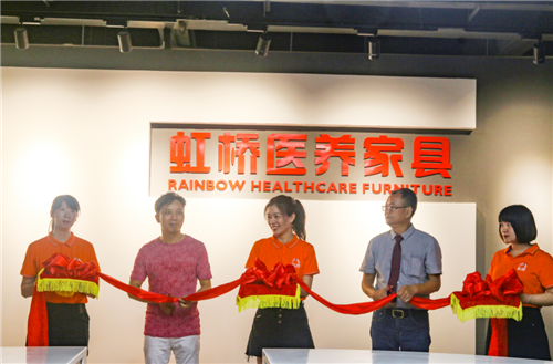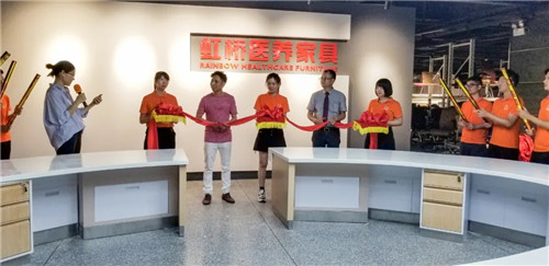 揭牌儀式由虹橋醫(yī)養(yǎng)家具事業(yè)部總經(jīng)理朱慧敏主持,虹橋董事總經(jīng)理左伯良與虹橋總顧問周本泉博士共同為儀式剪彩,并發(fā)表了熱情洋溢的講話。