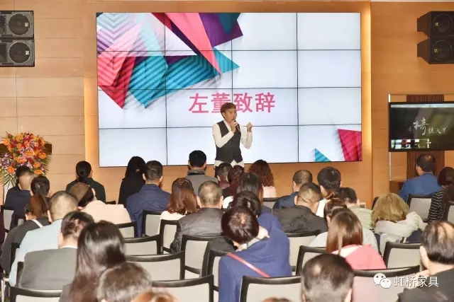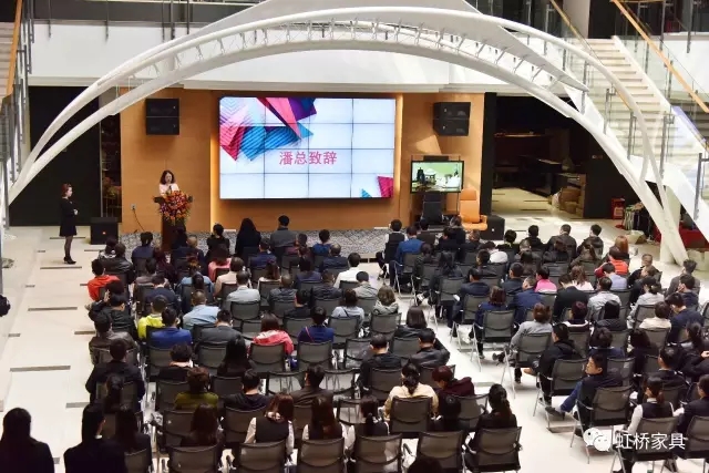 佛山市虹橋家具有限公司營銷執(zhí)行總裁潘紅梅女士首先致辭,潘總從公司生產(chǎn)、營運(yùn)、社會(huì)消費(fèi)三方面進(jìn)行了點(diǎn)評(píng)和總結(jié)。致辭中,潘總首先感謝虹橋伙伴們能夠甘苦與共,不離不棄,再談了在2016年我們所作的準(zhǔn)備和努力,最后號(hào)召伙伴們能夠手挽手,肩并肩共同走過這一路的姹紫嫣紅,走向更大的成功!