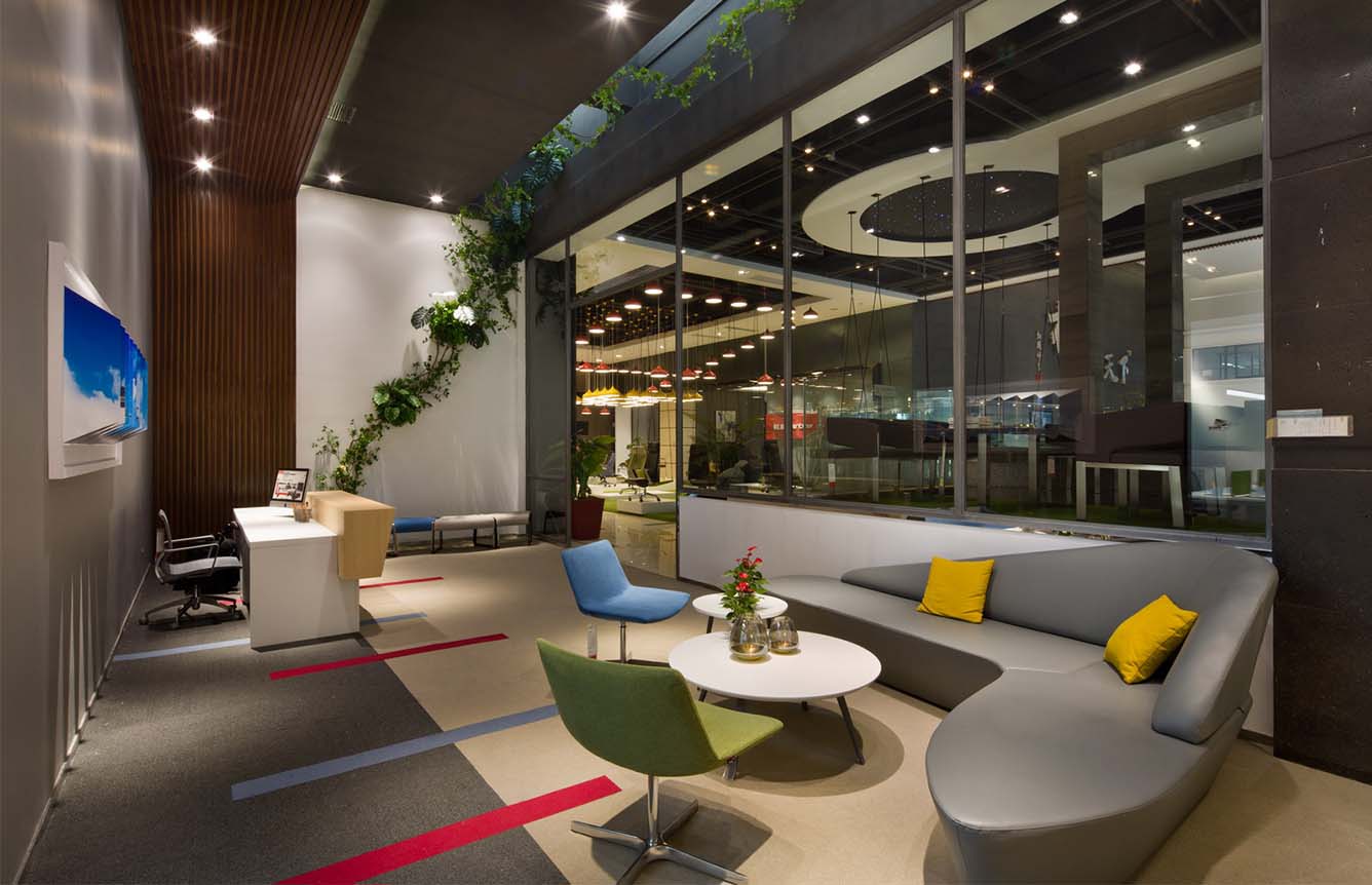 接待區(qū)域模糊辦公場所與接待環(huán)境之間的界線,營造出溫暖和親切的氛圍。同時,前臺接待區(qū)域還需以嶄新的、充滿活力的方式反映企業(yè)品牌形象,使其在市場中脫穎而出。