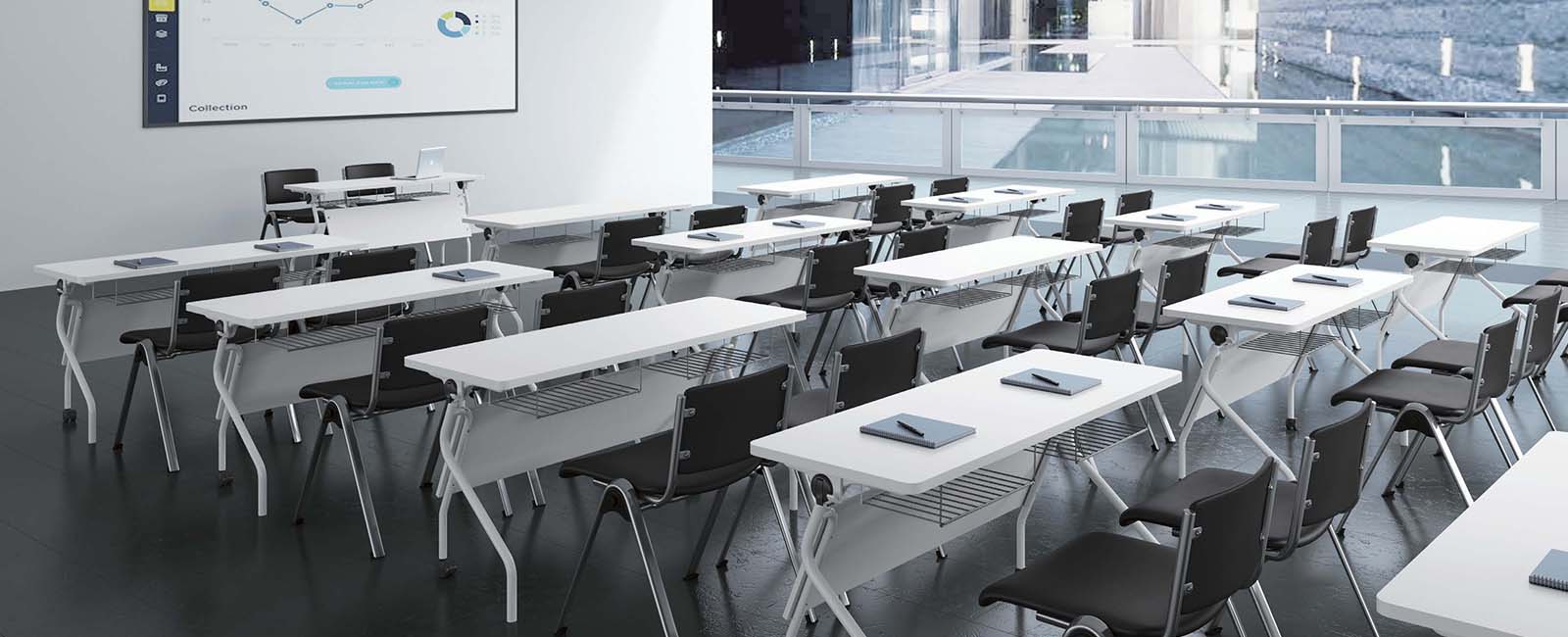 終身學(xué)習(xí)是企業(yè)發(fā)展戰(zhàn)略的最重要任務(wù)之一。企業(yè)通過培訓(xùn)將信息轉(zhuǎn)化為知識,培養(yǎng)人才并實現(xiàn)財富。培訓(xùn)室也成為現(xiàn)代企業(yè)的一個必要的功能空間。并且面對現(xiàn)代辦公的高效與多變特性,培訓(xùn)有時不僅承擔(dān)培訓(xùn)的功用,有時也可能用作大型會議,演講等,因此對于培訓(xùn)空間的需求也趨向多樣化,靈活化,模塊化,可轉(zhuǎn)化。